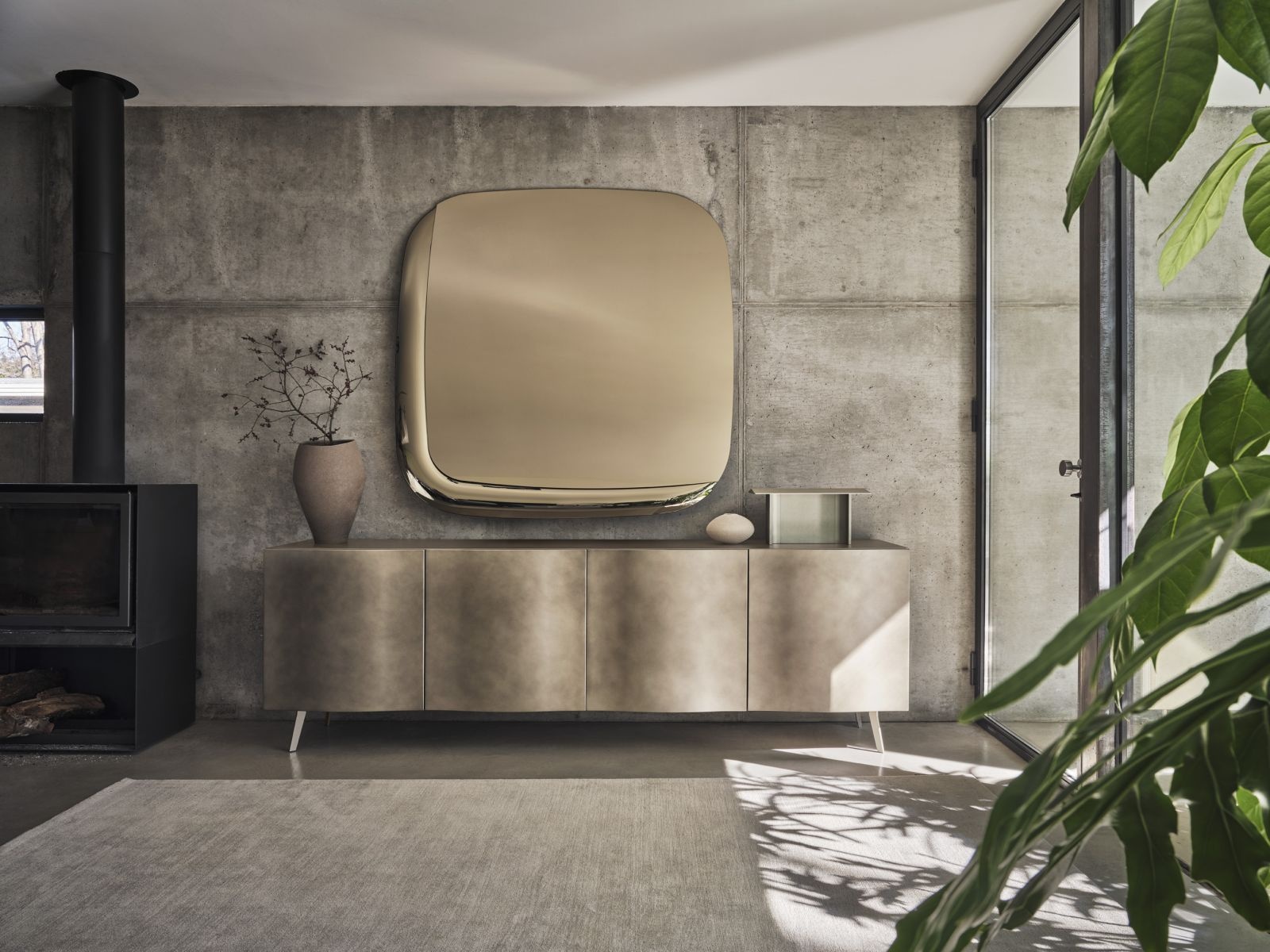 A tükör a 100 éves CALLIGARIS olasz, prémium bútorgyártó csúcsminőségű terméke. Egy egyszerű tükör, amelynek különlegessége a sík és az ívelt tükörüveg kombinációja. Míg a sík tükörüveg a tükrözés szerepét tölti be, az ívelt rész csupán esztétikai funkciót lát el, megtöri a képet és a visszaverődésekkel fényt visz a helyiségbe.