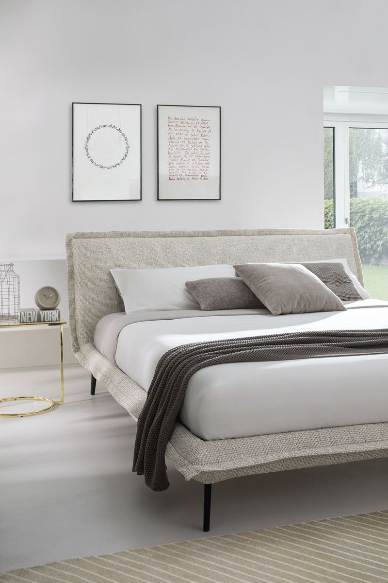 A franciaágy a 100 éves CALLIGARIS olasz, prémium bútorgyártó csúcsminőségű terméke. A Fluff letisztultságával és egyenes vonalú egyszerűségével tűnik ki. Egy arányos, könnyű vázat kárpitoztunk és eggyé tettük a fejtámlával, láthatatlan varratokkal rögzített egységet alkotva. A matrac látszólag a levegőben lebeg, bár egy vékony, mégis masszív szerkezeten nyugszik, amely karcsú fémlábakon nyugszik. Az egész ágy széleit szövetcsík díszíti, amely kiemeli a termék kiváló textil kidolgozását.