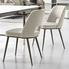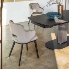 The dining chair is a top-quality product from CALLIGARIS, a 100-year-old premium Italian furniture manufacturer. This padded FOYER armchair exudes a sensation of comfort and invites you to sink in and relax. With a cocooning padded seat shell in curved plywood and soft seat structure with elastic belts, it is set on a refined wooden or metal base resting on four conical legs and comes in shades that are a faultless match to the seat shell.