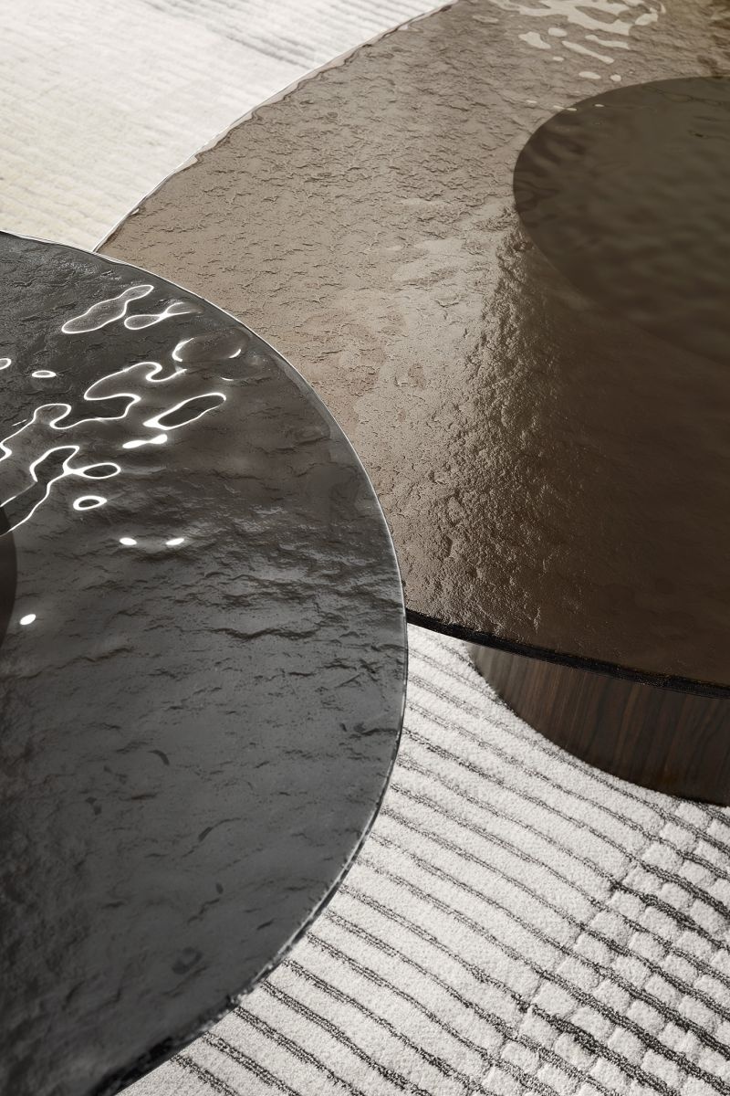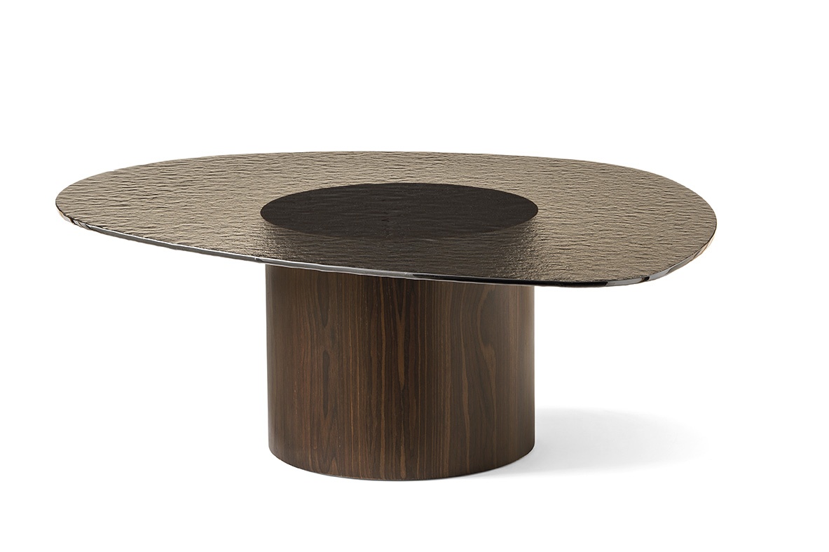 The coffee table is a top-quality product from CALLIGARIS, a 100-year-old premium Italian furniture manufacturer. The refined Mushroom coffee tables combine exquisite materials and organic forms. The bush-hammered glass top brings to mind the beauty and colourful vibrancy of glass-paste gems. The sleek cylindrical wooden base is slightly askew, giving the impression that the top is suspended slightly above it. Although the tops are spacious, the coffee tables will be an unobtrusive addition to the living area, bringing functional design and impeccable taste to any setting without being overwhelming.