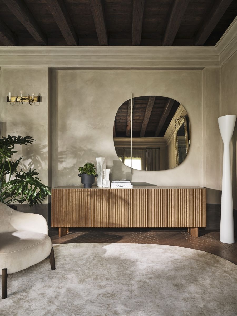 A VANITY új értelmet ad a „tükör” fogalmának: merész formaterve lágyan lekerekített kontúrokat kombinál egy finom, fémből készült pálcával (Választható fém színek: Matt Black, Polished Brass és Matt Pearl Beige). Ez a részlet megtöri a tükör kerek formájának harmonikus szépségét, és kifinomult, modern karaktert kölcsönöz neki.