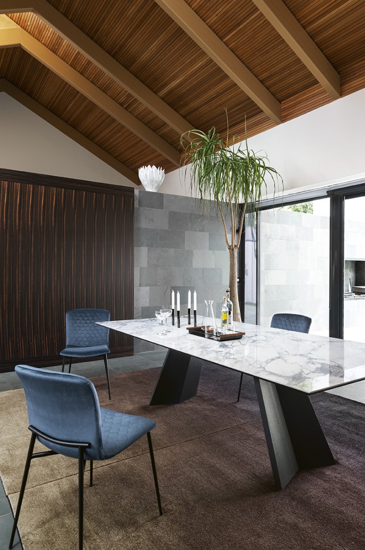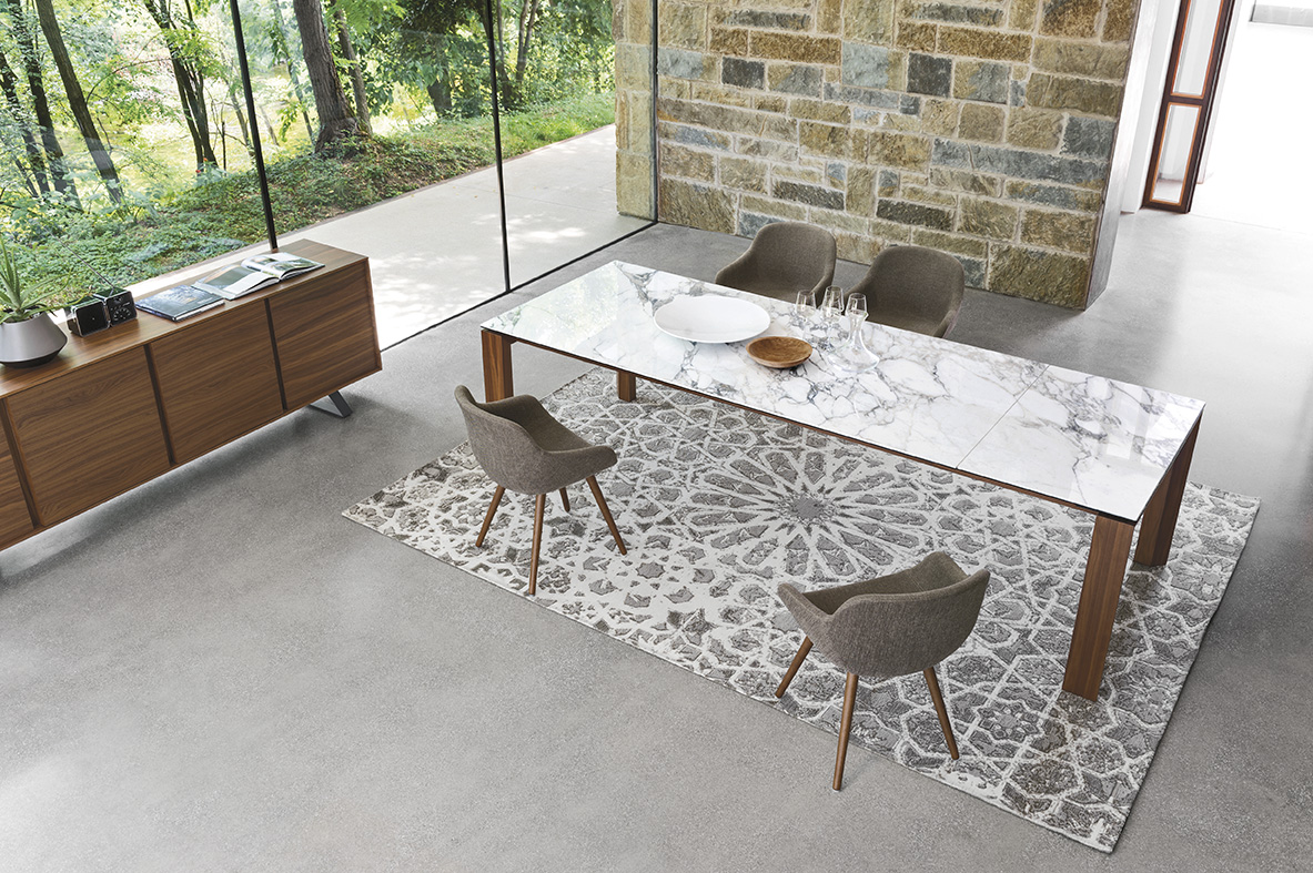 A márvány tökéletes választás klasszikus, kortárs vagy minimalista enteriőrökbe is: klasszikus terekben kandalló vagy padlóburkolatként grandiózus hatást kelt, míg modern konyhákban szigetként letisztult eleganciát ad. Nappaliban dohányzóasztalként vagy étkezőben asztallapként fókuszponttá válik, különösen U-alakú kanapékkal párosítva, mint a Nicoline Aura modellel. Nagyobb felületeken (pl. 160+ cm asztalok) pedig teljes pompájában ragyog.
