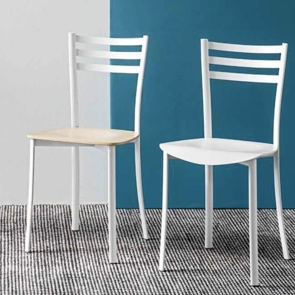 ACE metal chair with plywood seat. A lightweight chair that is also versatile thanks to the possibility of combining several finishes for the seat with the tubular steel frame. The backrest ensures comfortable support for the back.