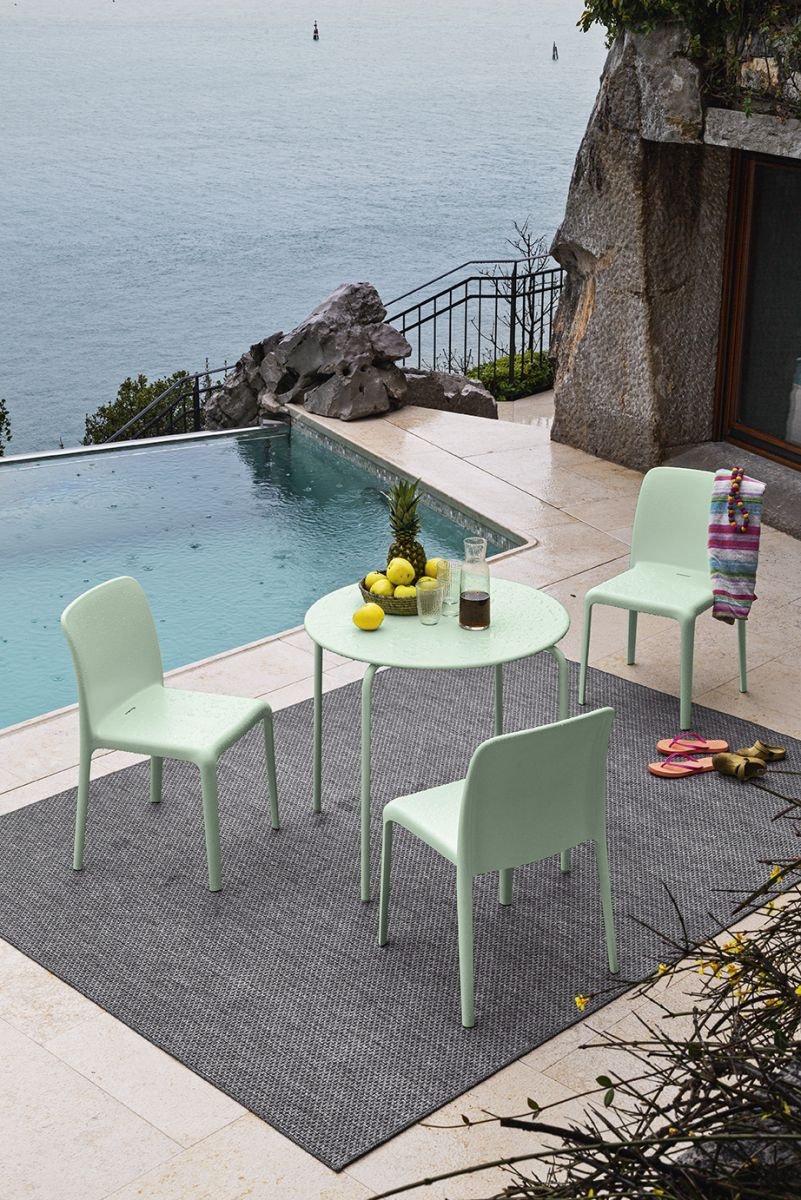 Az étkezőasztal a 100 éves CALLIGARIS olasz, prémium bútorgyártó csúcsminőségű terméke. Az egyszerűség szinonimájaként az EASY asztal cső alakú fém vázzal és formázott fémlemezből készült asztallappal rendelkezik. Minden fém alkatrész speciális kezelésen esik át, hogy kültéri használatra alkalmasak legyenek. Az asztalból akár 4 db is egymásra rakható. Gyártó: CONNUBIA by CALLIGARIS©