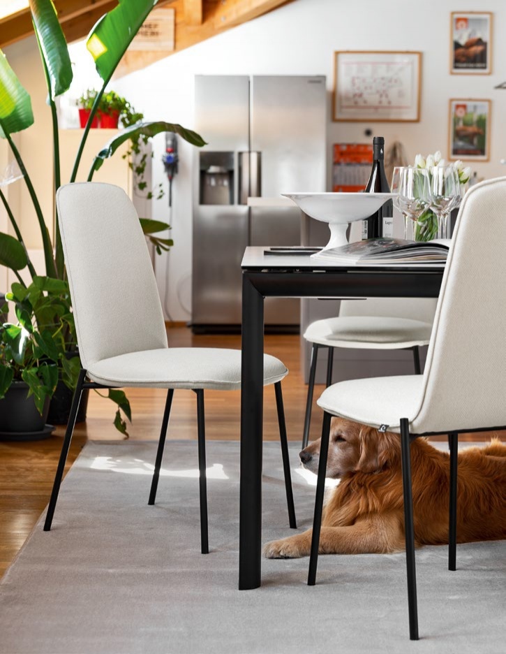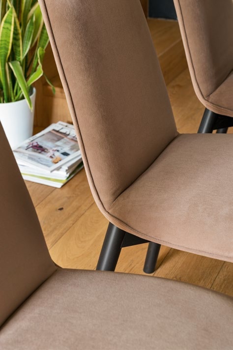 Az étkezőszék a 100 éves CALLIGARIS olasz, prémium bútorgyártó csúcsminőségű terméke. A Riley család étkezőszéke. Ez a szék négy fa vagy fém lábbal és magas háttámlával rendelkezik, így otthoni használatra és éttermi célokra egyaránt alkalmas. Az ülőfelület szövettel kárpitozott, párnázott rétegelt lemezből készül. A háttámla díszvarrása finom, hullámszerű mintázatot és vonzó, kifinomult textúrát hoz létre. Gyártó: CONNUBIA by CALLIGARIS©