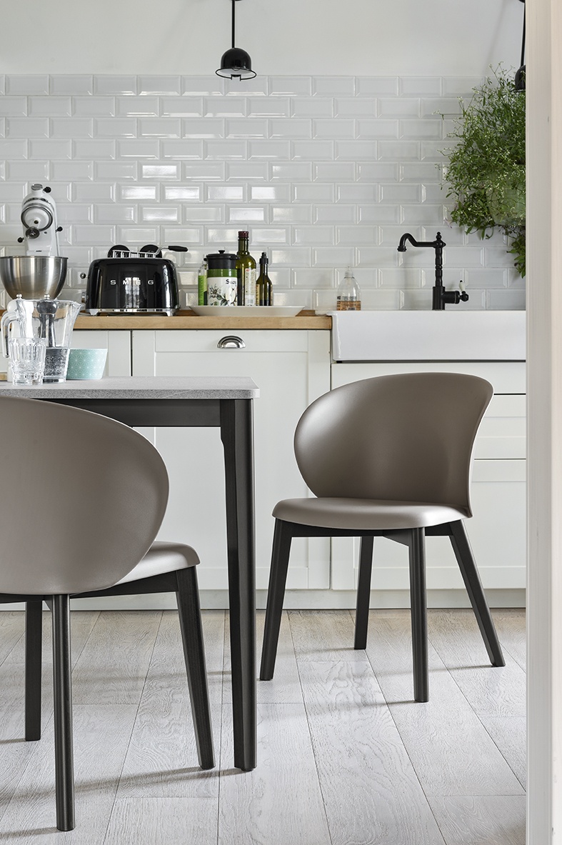 The dining chair is a top-quality product from CALLIGARIS, a 100-year-old premium Italian furniture manufacturer. TUKA armchair in tubular metal. Seat shell with wide wraparound back and rounded seat available in 100% recycled Polypropylene or upholstered and fixed upholstered. Manufacturer: CONNUBIA by CALLIGARIS©