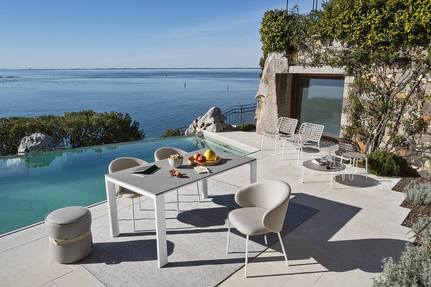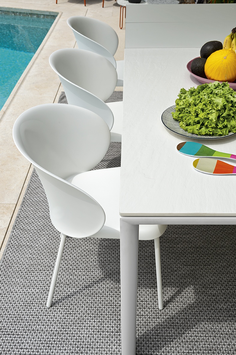 The dining chair is a top-quality product from CALLIGARIS, a 100-year-old premium Italian furniture manufacturer. Tuka is the perfect armchair for outdoor lounging. It has a tubular-metal frame which has been treated and coated for outdoor use. The seat and large wrap-around backrest are made of 100% recycled polypropylene or with draining padding. Made from water-repellent Sunbrella® fabric, the covering protects against the fading effect of UV sunlight, as well as being mouldproof and stainproof. Manufacturer: CONNUBIA by CALLIGARIS©