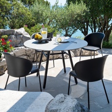 Yo! olasz kültéri kanapé 22 mm átmérőjű fémcső vázzal rendelkezik. A háttámla és a kartámasz alumínium keretre szőtt megerősített lapos polipropilén fonatból készülnek. Az ülő- és a háttámla párnák poliuretán habbal vannak töltve, melyeket vízálló PVC burkolat véd. A levehető szövethuzat különleges védelmet nyújt az UV napsugárzás ellen. Gyártó: CONNUBIA by CALLIGARIS©