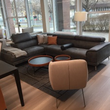 NICOLINE ITALIA first class producer. 100% Italian design, from hand-picked raw materials, handmade unique sofa. Modern and elegant, comfortable large soft seat and headrest these are the characteristics of Tiziano. A mechanism makes it possible to recline the headrest. Legs are in shiny metal. Upholstery available in luxurious leather, fabric and nubuck. The sofa is available in innovative, special textile, which is hypoallergenic, antibacterial and anti-stain. For further information please download "New textile generation" document. More than hundred fabric and leather samples are available in our showroom.