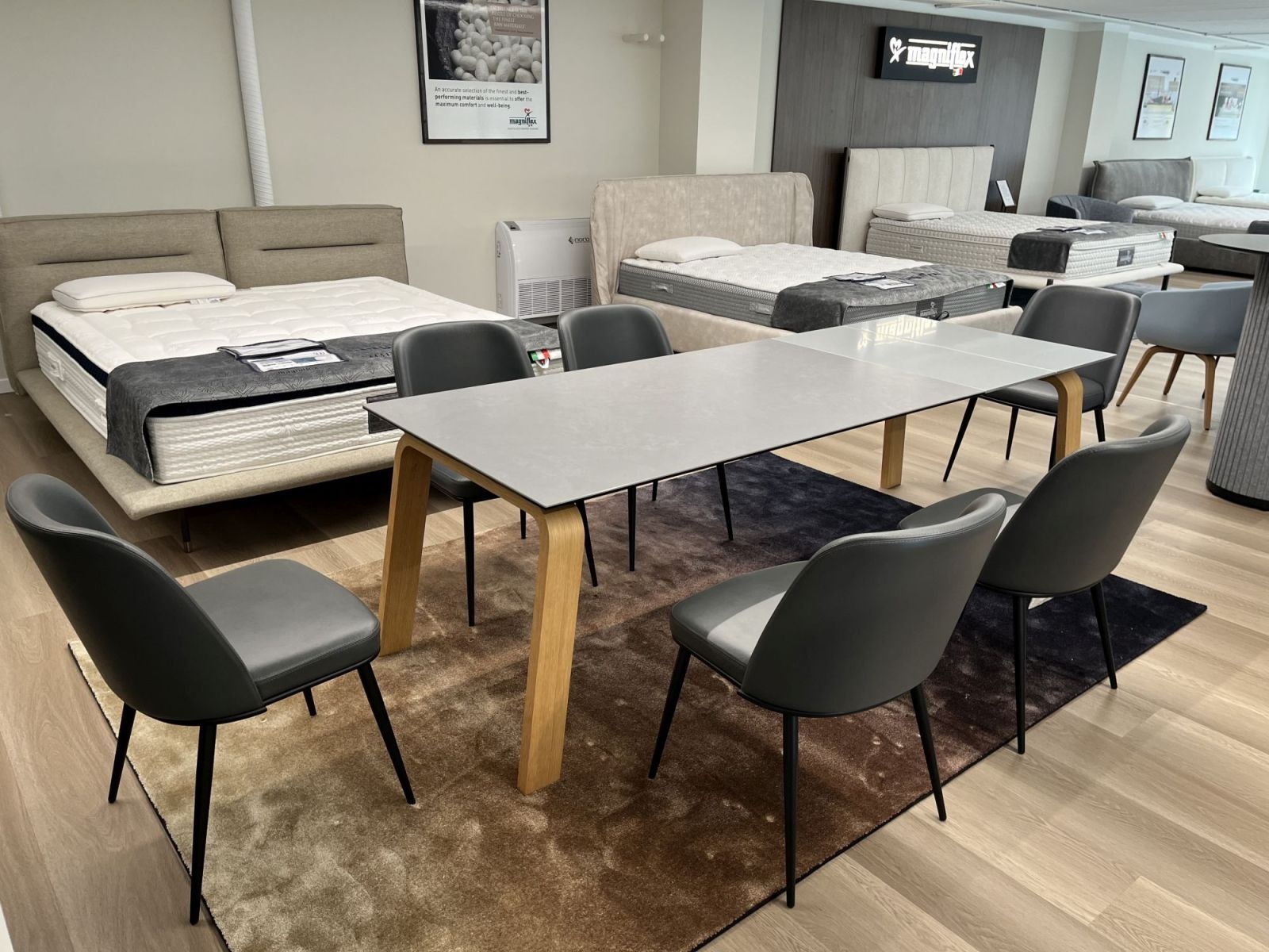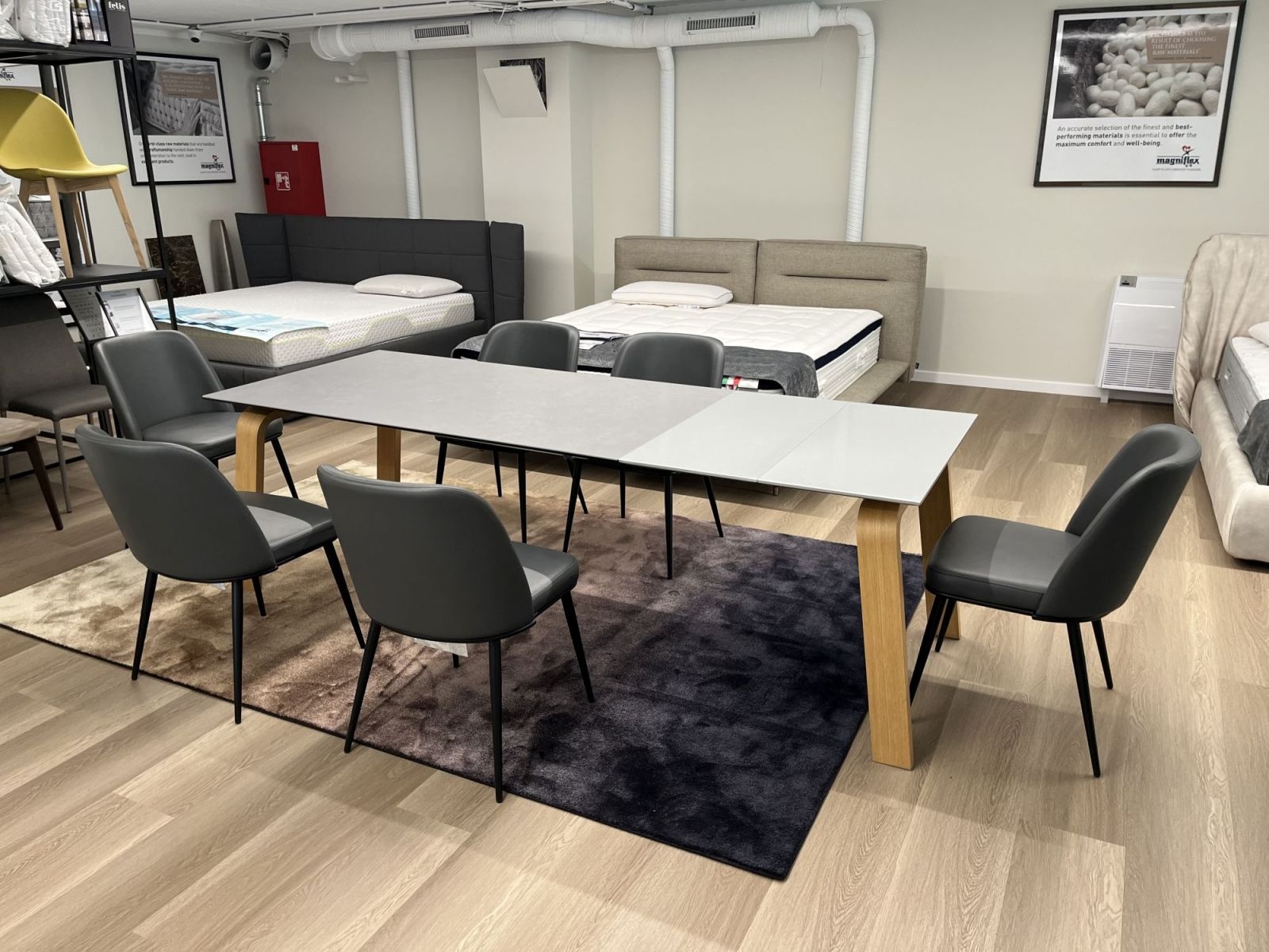 KIÁLLÍTOTT ÉTKEZŐASZTAL AZONNAL ELVIHETŐ! Targetpoint olasz gyártó terméke. Bővíthető 160-240x90cm, karcolásálló kérámia lapos, fa lábas étkezőasztal kifogástalan állapotban elvihető.