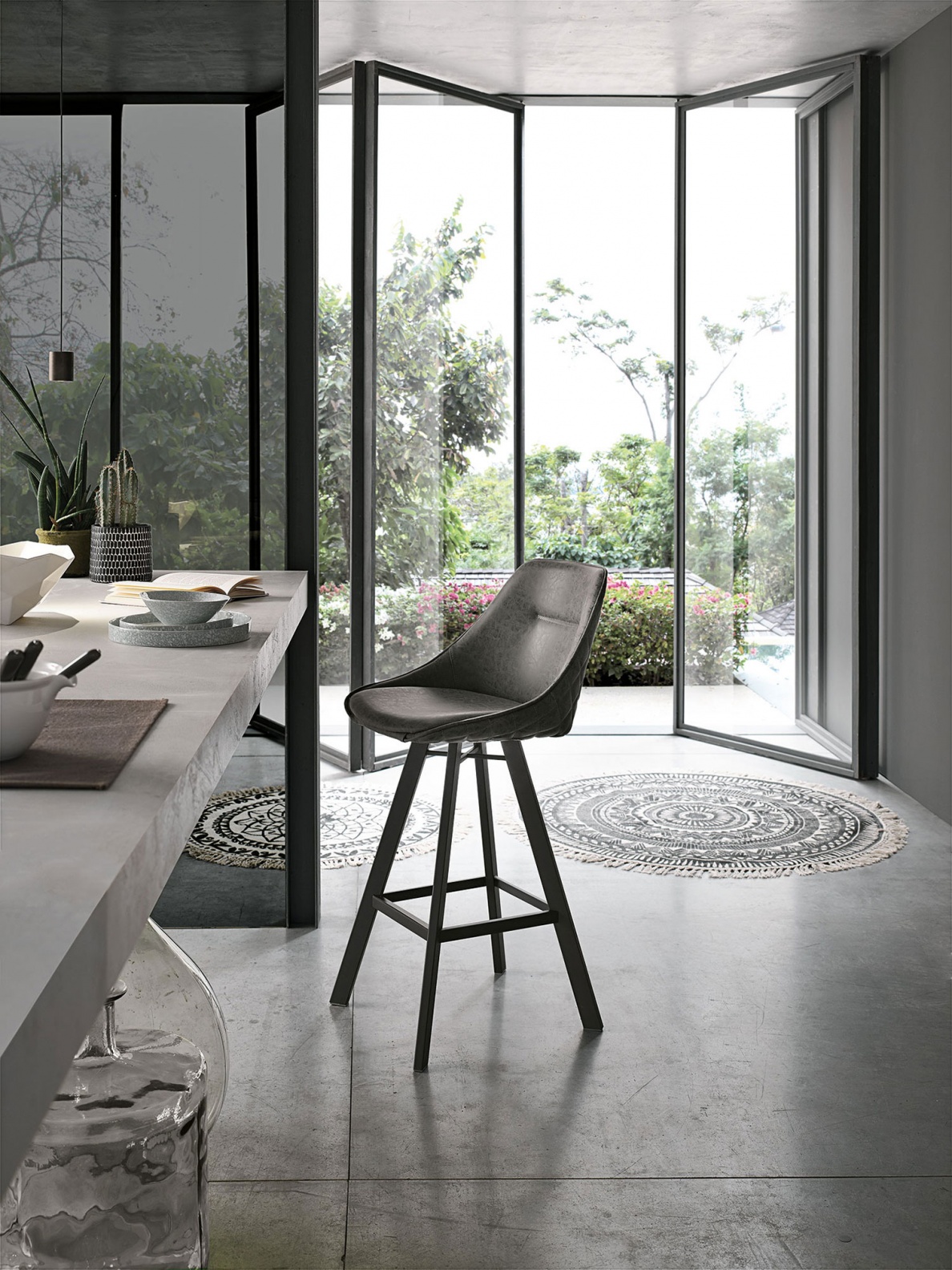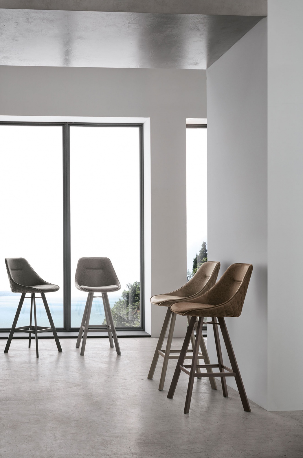 Modern Italian design barstool. Upholstered chair with painted, central, metal frame and Vintage Soft-Touch ecoleather covered seat. Available in four colours. Please place paired quantity order!
