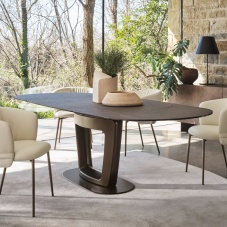 NÉZZE MEG A VIDEÓT! 100% olasz design. Orbital egy modern dohányzóasztal, gres toppal, melynek különlegessége, hogy a két lap orbitálisan mozgatható, ezzel mérete növelhető-csökkenthető. A gres top karcolásálló. Mérete Ø70-122x35cm
